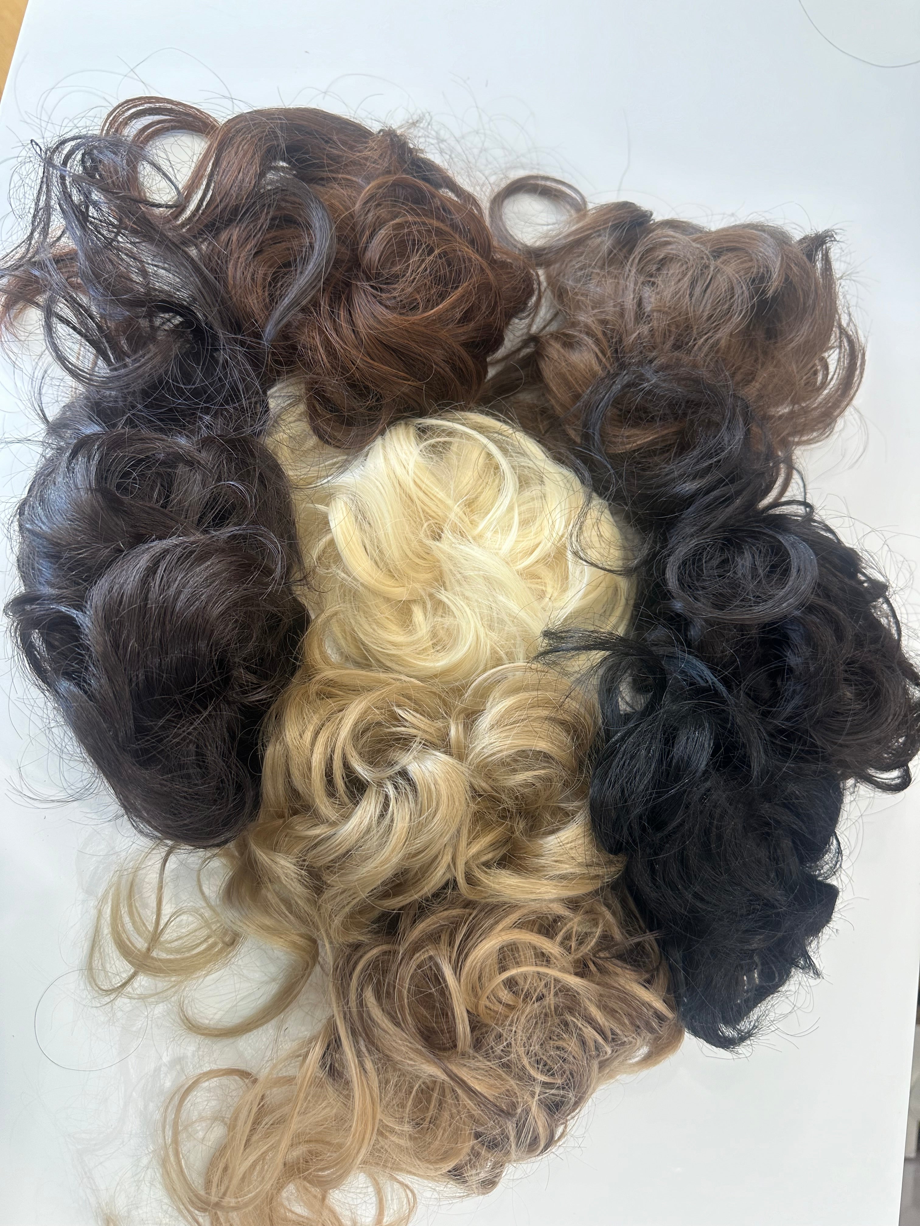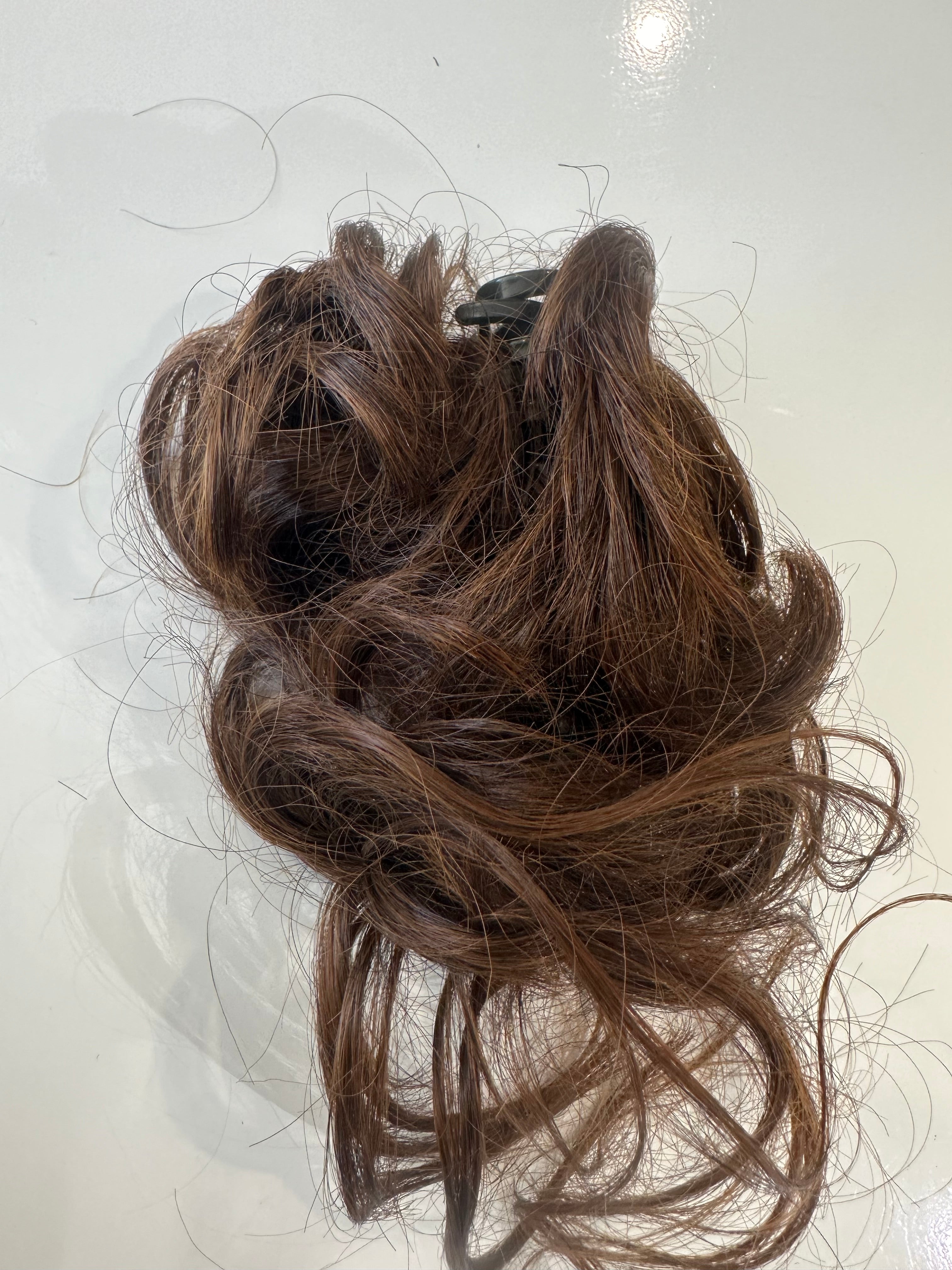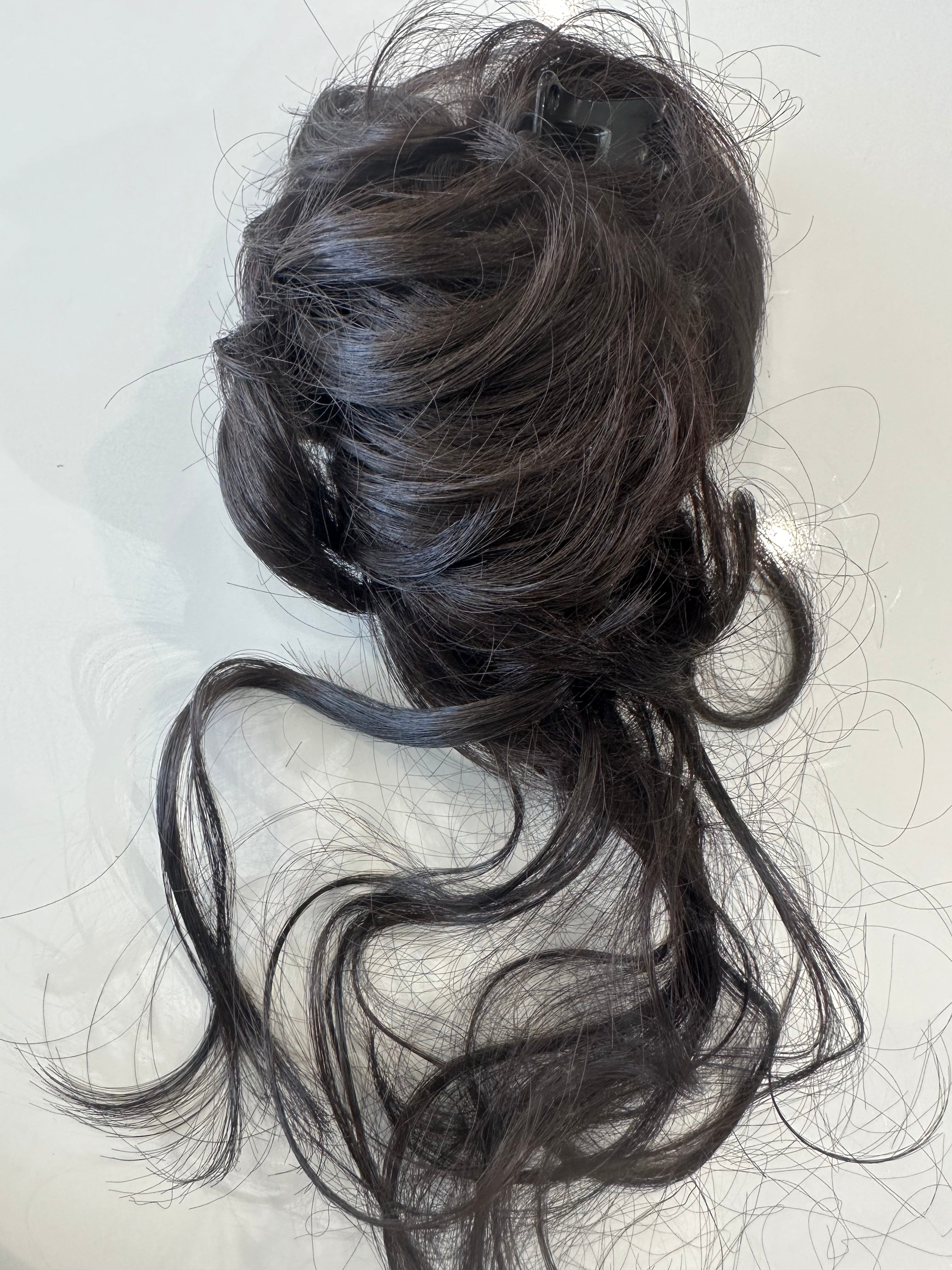 Synthetic claw scrunchy/messy hair