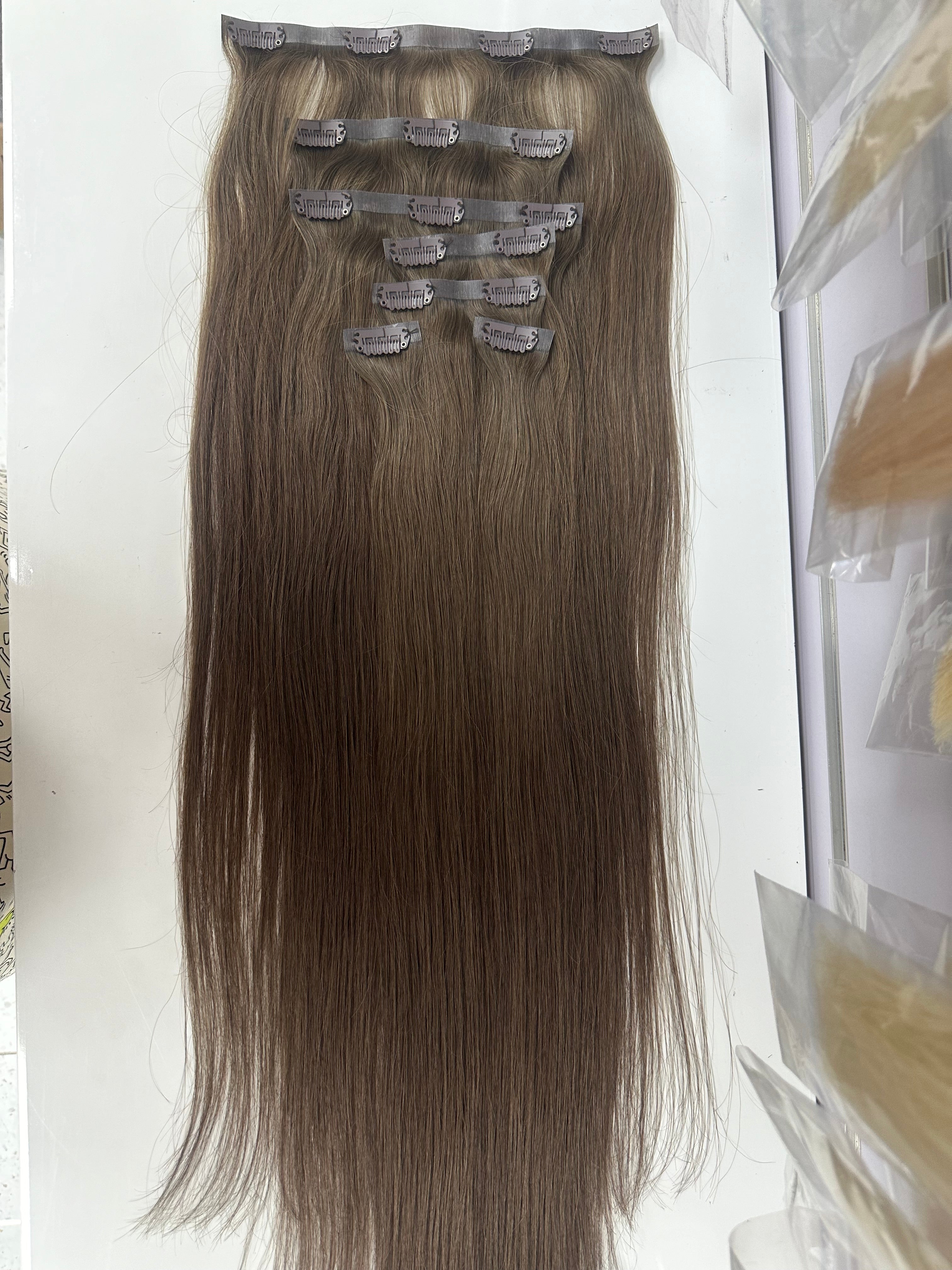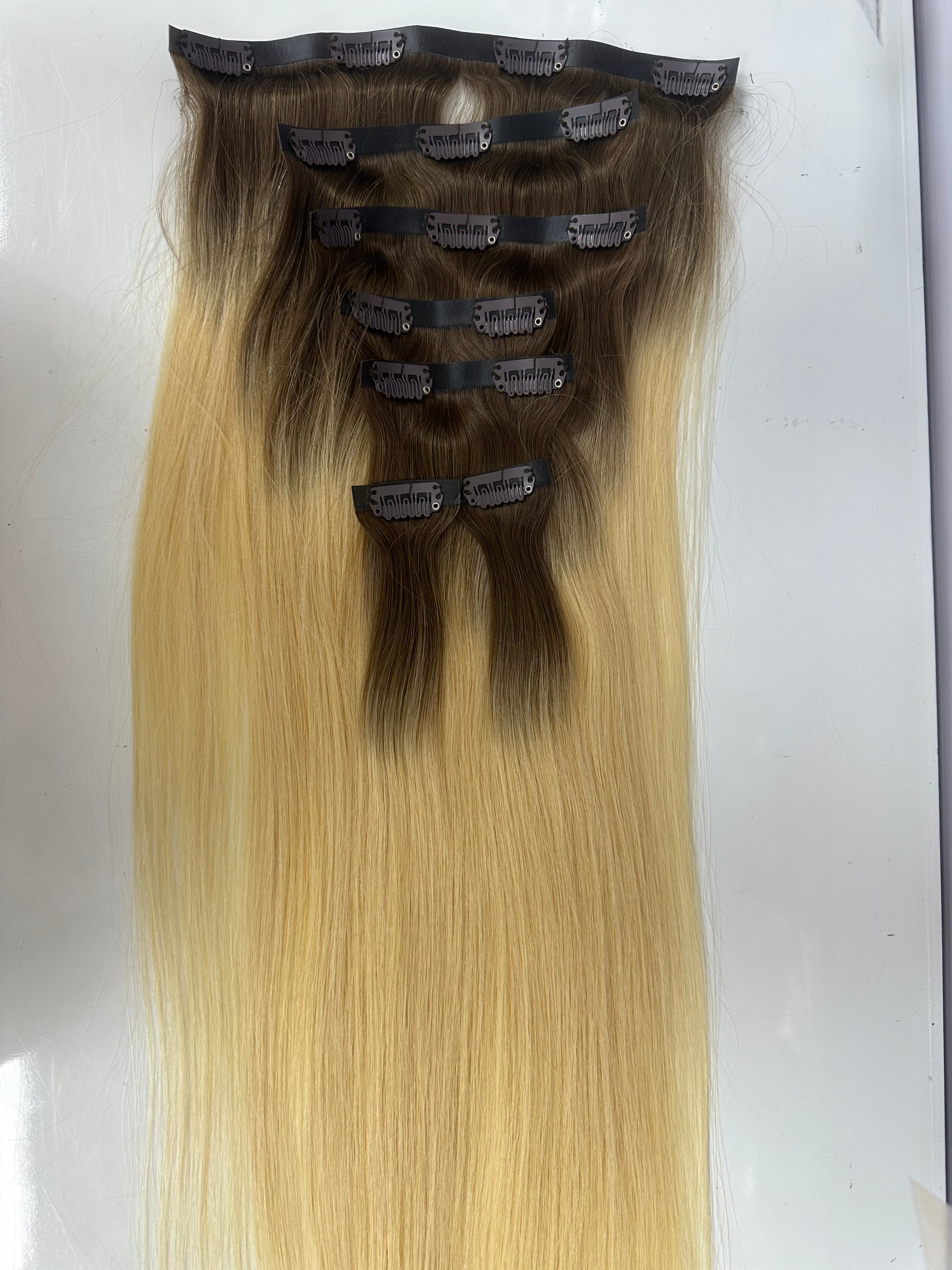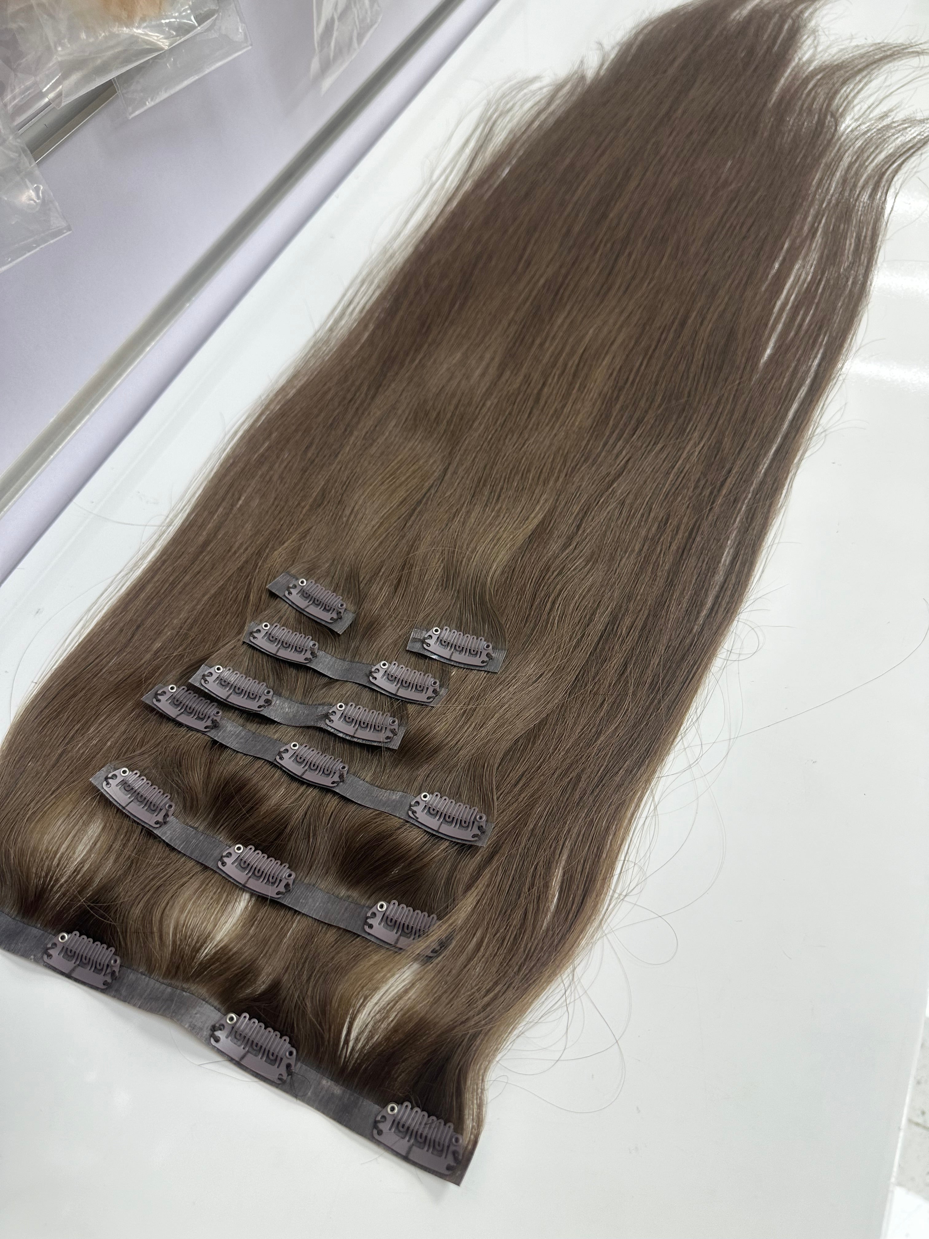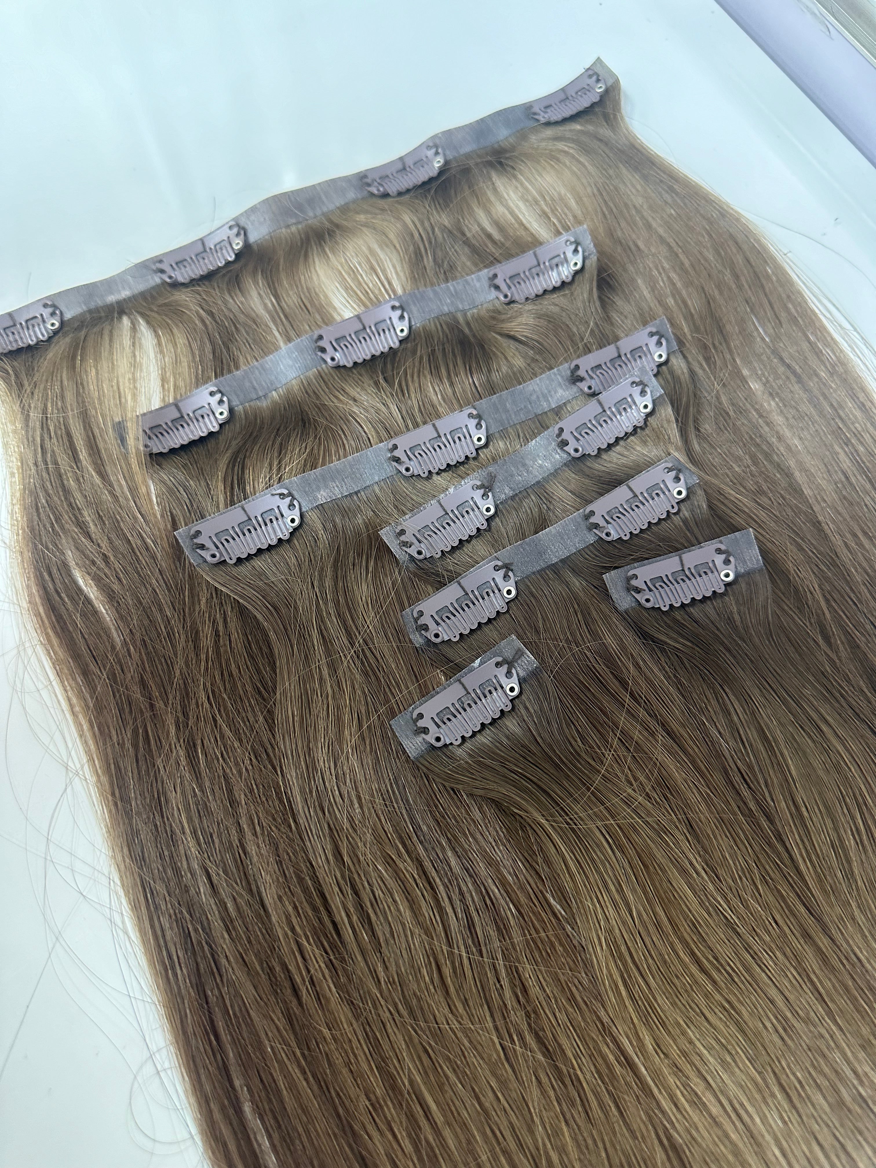 Human hair Pu Clip ins