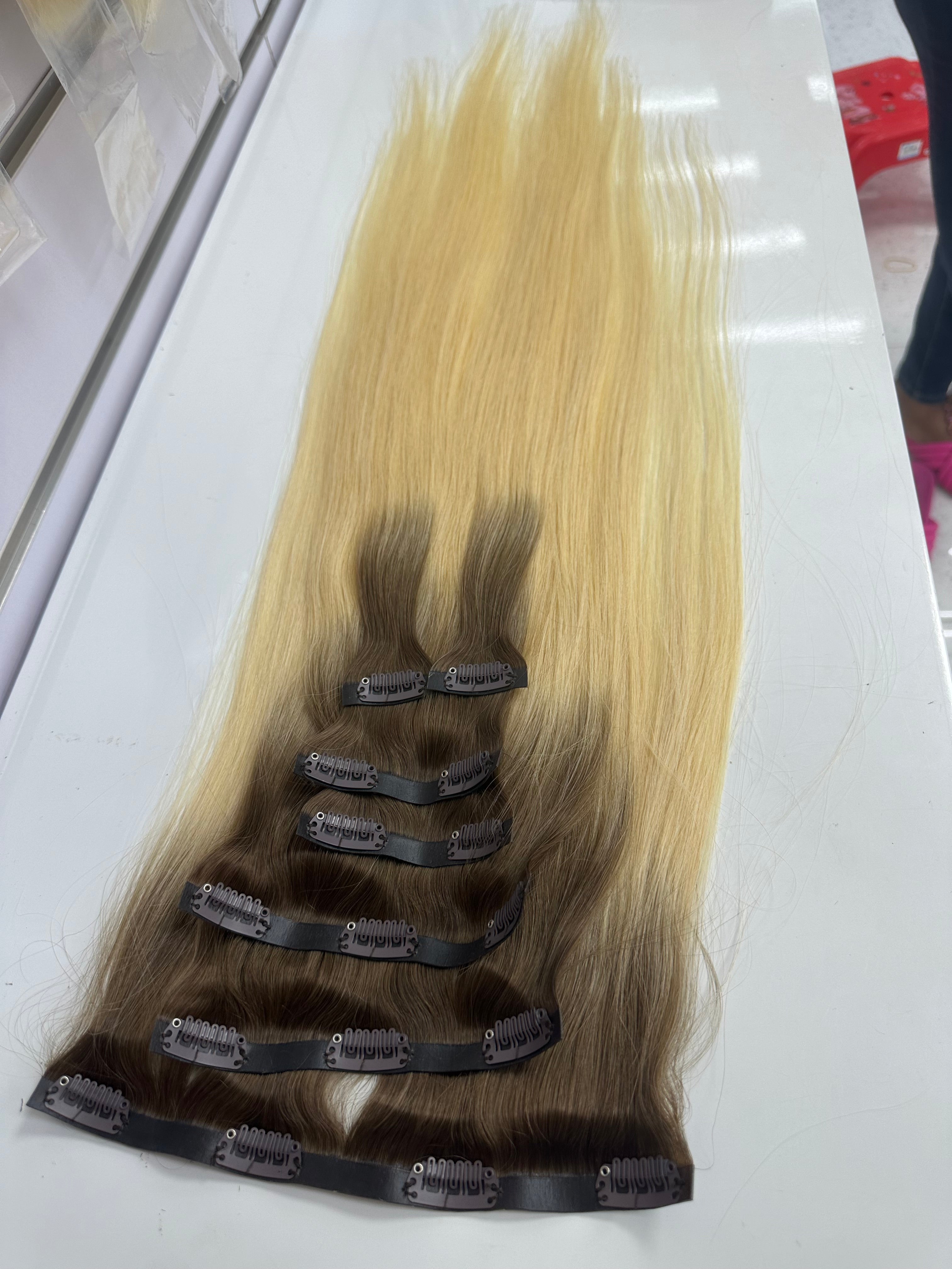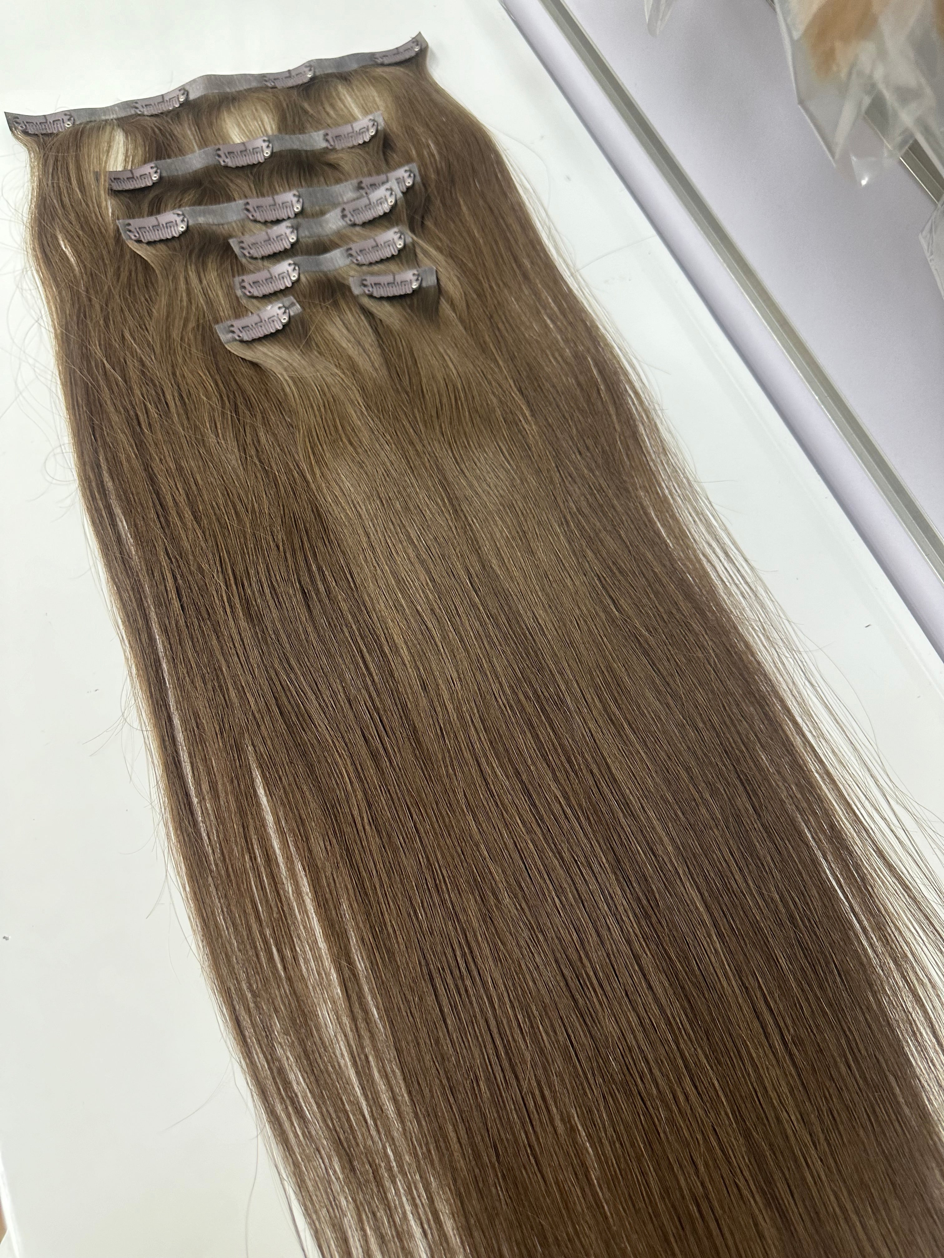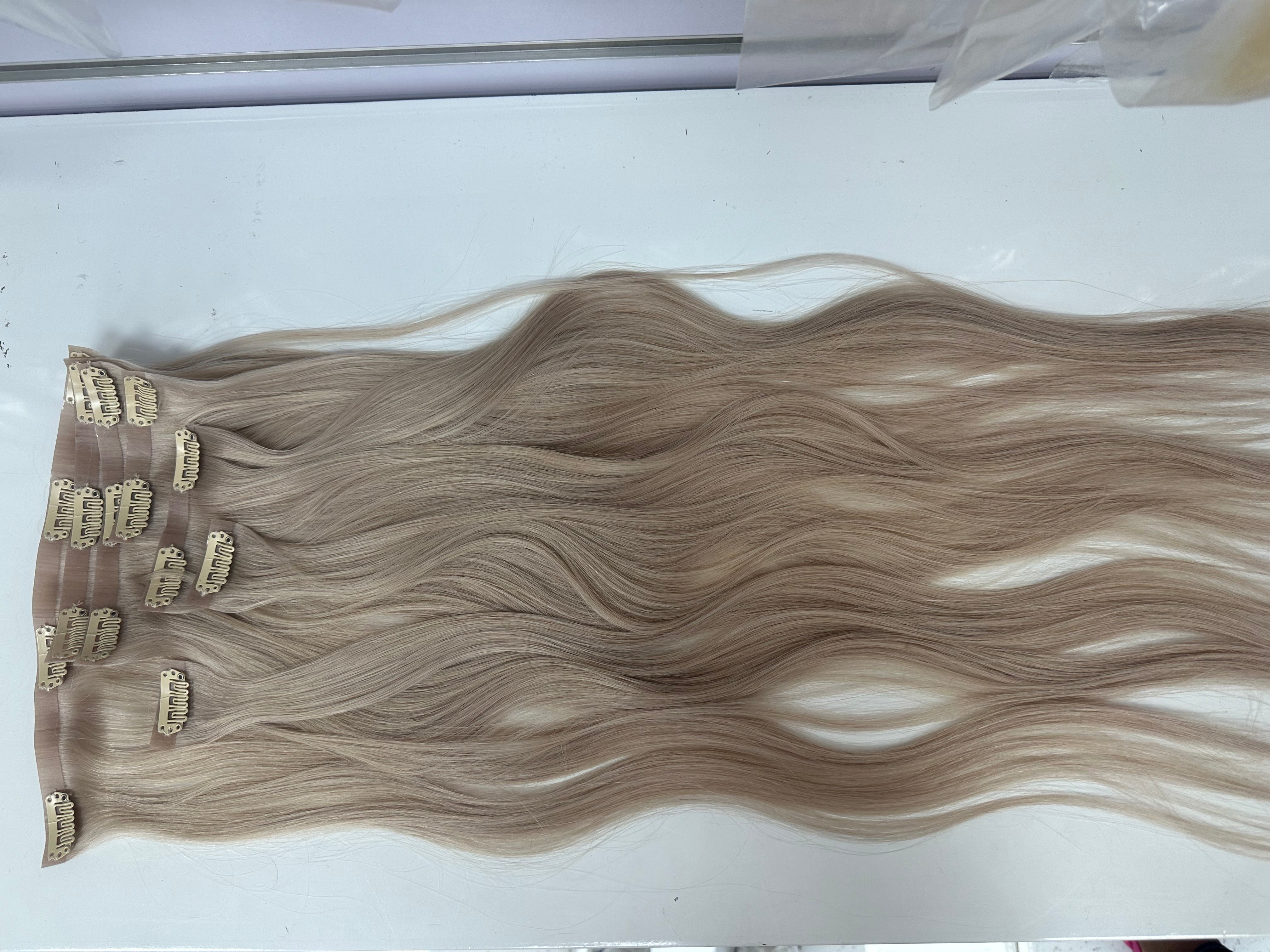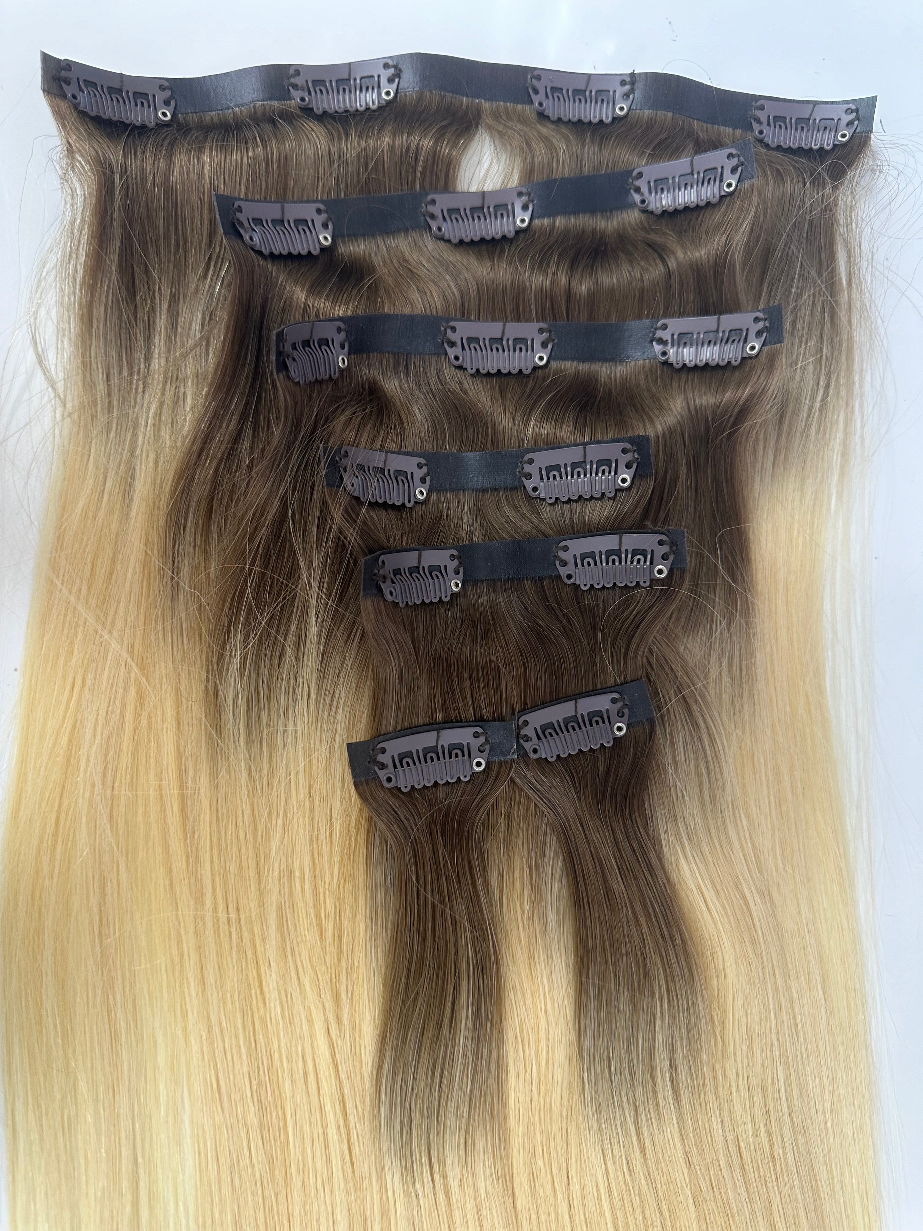 Human hair Pu Clip ins
