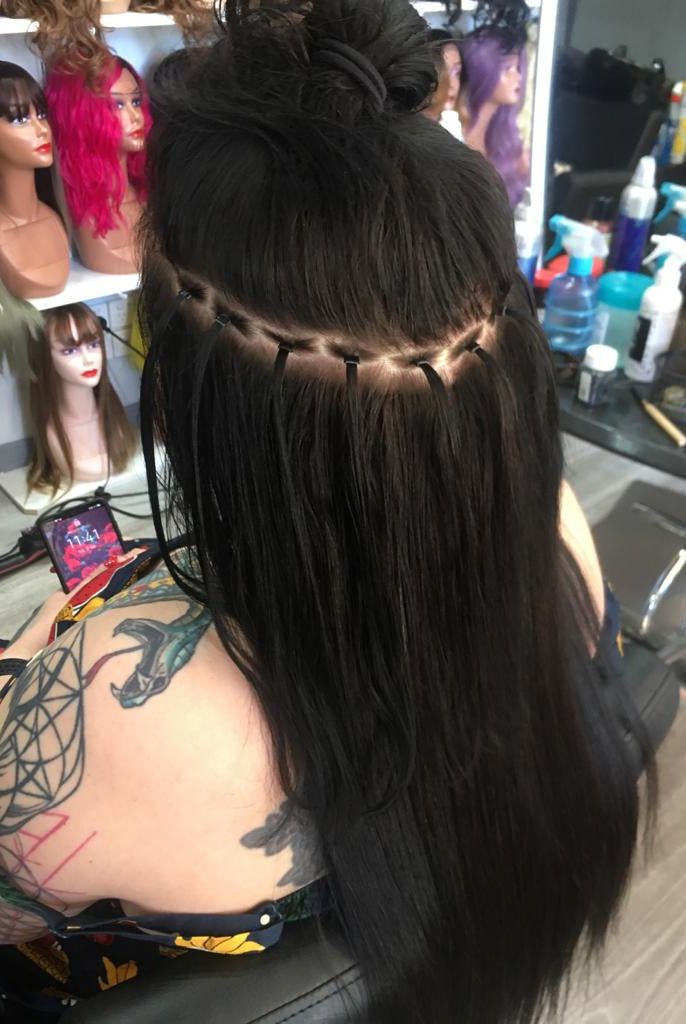 The initial step in embarking on a hair extensions journey is consultation. If you are new to hair extensions, it is recommended to schedule a consultation before booking an appointment. In the event that your hair is not naturally dark brown or black, if it is shorter than shoulder length, if you have highlights, bald patches, very thin or thick hair, or a blunt cut, it is advised to book a consultation prior to your appointment.
